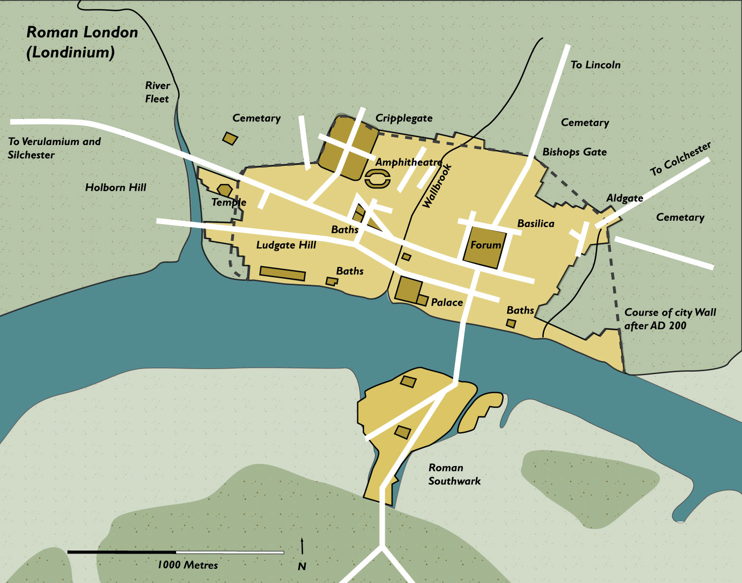 London is nearly 2,000 years old, but did you know that for 400 of those years if was Roman? Londinium was founded by the Romans in 47CE at a point where the Thames was navigable and where gravel shores meant that a bridge could be securely built. The site of this first bridge was so good in fact that every single version of London Bridge that followed was built within a few hundred yards. Two gravel hills sat nearby and it was on these - Ludgate and Cornhill - that Roman London was built.